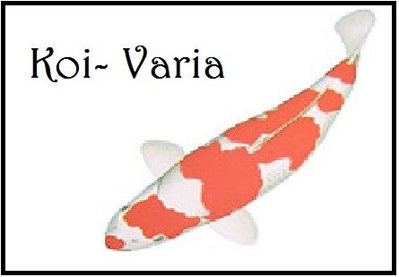 Sumi- Goromo – Dit is een witte koi met een zwart patroon waarvan elke schub een rode rand heeft. Of rood-witte koi waarbij alle hi vlekken helemaal overdekt zijn met zwart.
